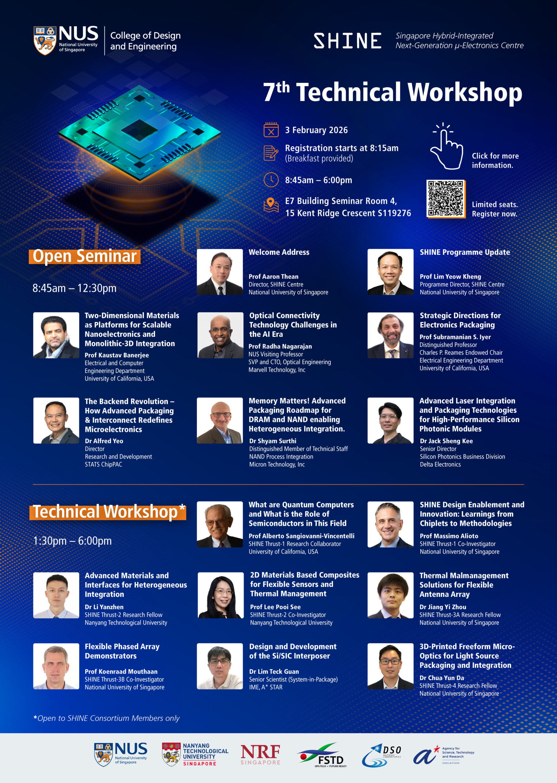 Prof Lim Yeow Kheng is the Programme Director of the SHINE Centre and the Master of Science in Semiconductor Technology and Operations (STO) programme at the National University of Singapore (NUS). He also serves as Assistant Dean (Research and Technology) and Professor in the Department of Electrical and Computer Engineering at the College of Design and Engineering. With over 20 years of industry experience in semiconductor technology and OSAT manufacturing, Prof. Lim has held leadership roles at GlobalFoundries and JCET Group.