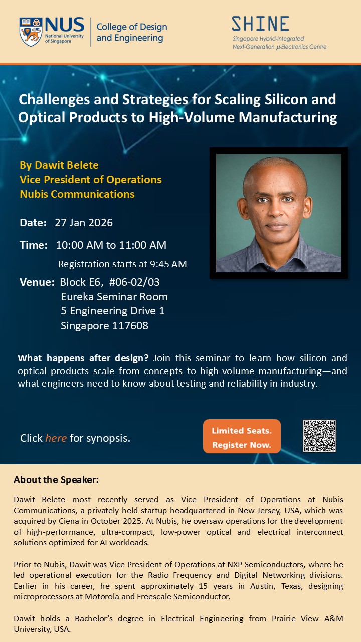Dawit will explore the technical and operational challenges of scaling silicon and optical products from design tape-out to high-volume manufacturing.